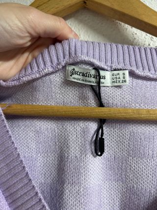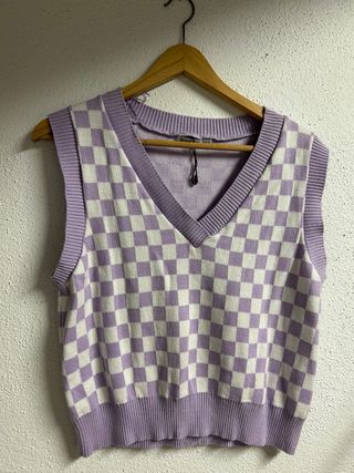 Chaleco de punto cuadros lila y blanco