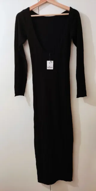 Vestido largo y ajustado de manga larga de la marca Stradivarius. Precio original: 39,95€