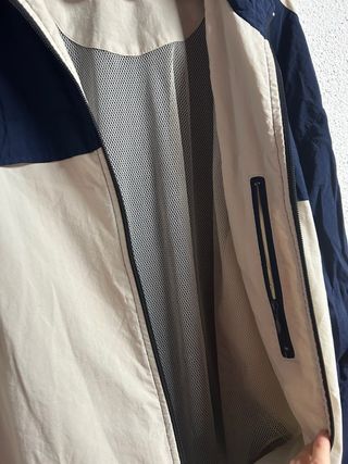 Chaqueta deportiva Adidas en color beige. Presenta el diseño clásico de tres rayas en las mangas. - Logo de Adidas bordado en el pecho. - Cierre de cremallera frontal. - Bolsillos laterales. - Puños y cintura elásticos. Pone talla S pero queda ancha