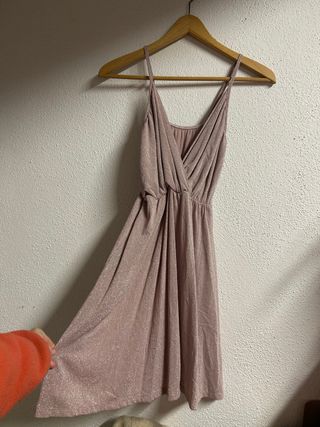 Vestido con un acabado brillante y tirantes finos. El diseño cruzado en la parte delantera le da un toque elegante. - Tejido con destellos. - Tirantes ajustables. - Corte favorecedor.