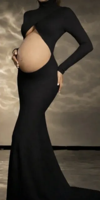 Vestido elegante diseñado para sesiones de fotos de embarazo. Su diseño moderno y favorecedor realza la figura. - Cuello alto. - Barriga al aire para poder lucirla. - Mangas largas. - Tejido elástico y cómodo. - Talla M/L sirve desde la 38 a la 42. Tengo otro de encaje transparente en mi perfil.