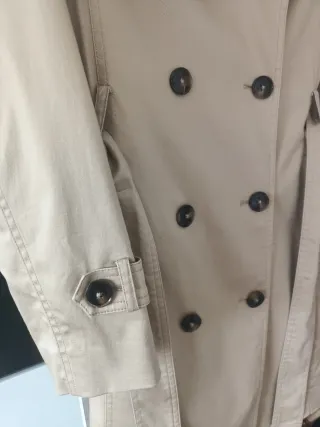 Clásica gabardina en color beige. - Cierre de botones. - Cuello camisero. - Bolsillos frontales.