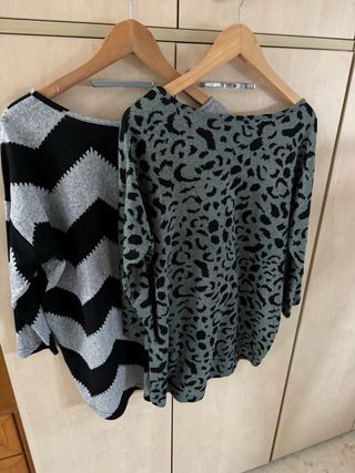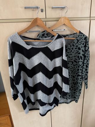 Pack de dos jerseys idénticos de la marca Only. Ver medidas en las fotos. - Jersey gris con estampado de zigzag en negro. - Jersey verde con estampado de leopardo.