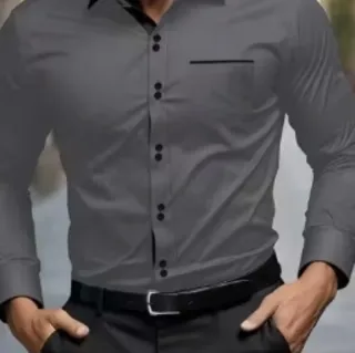 Camisa de vestir para hombre con un diseño moderno y elegante. - Color gris - Cuello camisero - Cierre de botones - Bolsillo en el pecho con detalle de línea negra