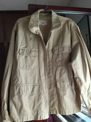 Cazadora de tela estilo militar. De entretiempo, - Cuello camisero. - Cierre de cremallera. - Cuatro bolsillos delanteros con botón. - Puños ajustables con botón.
