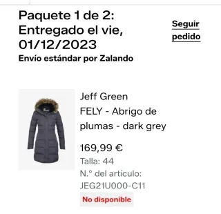 Abrigo largo de plumífero de la marca Jeff Green. Cuenta con un diseño acolchado y capucha con pelo. - Cierre de cremallera. - Bolsillos laterales. - Puños ajustados. Lo vendo porque compré 2 tallas y se me pasó el plazo de devolución.