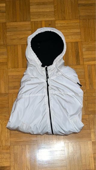 Chaqueta blanca con capucha y cremallera frontal. - Diseño moderno. - Bolsillos laterales. - Cordones ajustables en la capucha y el bajo.