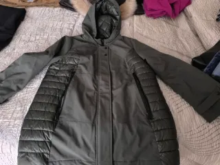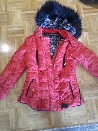 Chaquetón de tres cuartos, ideal para mantenerse abrigado. - Diseño acolchado en el interior de la capucha. - Cierre de cremallera y botones a presión. - Bolsillos laterales Para talla 46, muy abrigado y valido para lluvia moderada