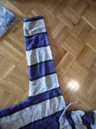 Elegante capa de punto con un diseño tejido en tonos marrones y multicolores. Perfecta para añadir un toque especial. Sin uso, fue un regalo