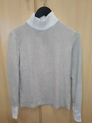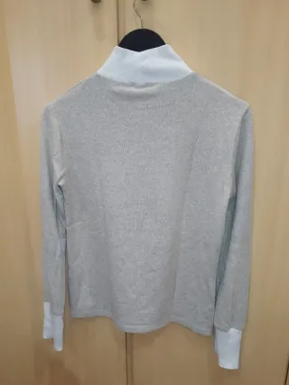 Jersey de punto fino con cuello alto y detalles en blanco. Ideal para un look casual o elegante. - Cuello acanalado. - Puños y bajo con acabado acanalado.