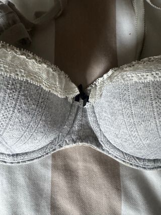 Sujetador con un delicado diseño de encaje en el borde. - Color gris. - Detalle de encaje.