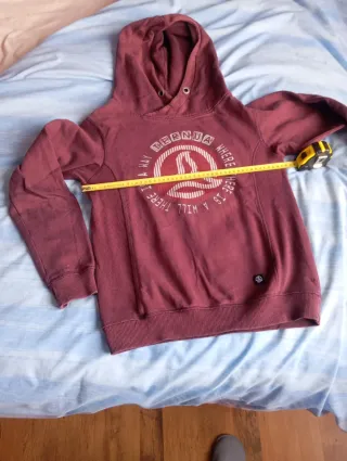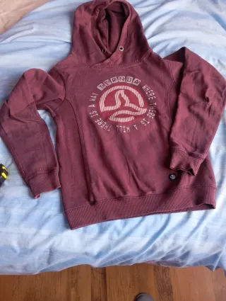 Sudadera con capucha de la marca Ternua en color granate. Talla M de chica, pero le quité la etiqueta porque me molestaba.Presenta un diseño circular en el pecho con el logo de la marca y el lema A WAY THERE IS A WILL WHERE THERE IS. - Diseño con capucha. - Estampado frontal. - Puños y bajo elásticos.