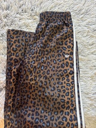 Pantalones deportivos con un llamativo estampado animal. - Diseño con estampado de leopardo. - Detalle de las tres rayas laterales. - Cintura elástica para mayor comodidad. - Son Oversize