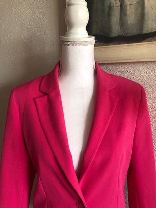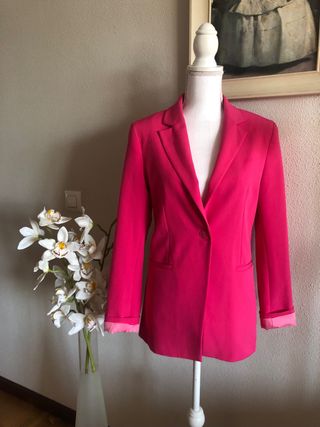 Chaqueta tipo americana de la marca Bershka. - Color rosa vibrante. - Diseño de un solo botón. - Solapas clásicas. - Puños con vuelta.