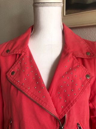Chaqueta estilo cazadora de la marca Amichi. - Diseño con tachuelas en la solapa. - Cierre de cremallera. - Bolsillos frontales con cremallera. - Color coral