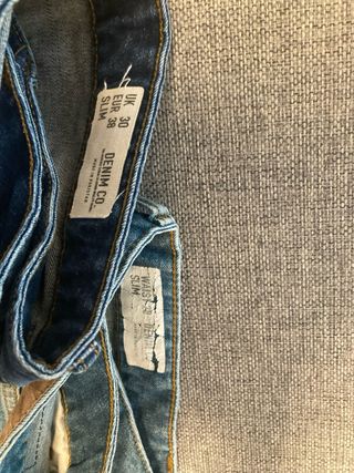 No acepto ofertas. Falda vaquera H&M, talla 38. Falda vaquera blanca LA REDOUTE, talla 40. Top verde Bershka, talla M. Top negro con blanco H&M, talla M. Top gris Neon Coco, talla L. Camiseta de manga larga azul oscuro LOVIE&Co, talla L. Cualquier duda, estoy a vuestra disposición. Las faldas son de distintas tallas, pero tienen la misma medida. La blanca tiene la medida de la falda de H&M, que es una 38.