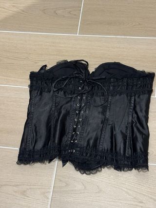 Corsé elegante con detalles de encaje. - Diseño con varillas. - Cierre de cremallera lateral. - Lazos decorativos. - Ribete de encaje en escote y bajo.