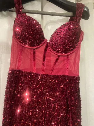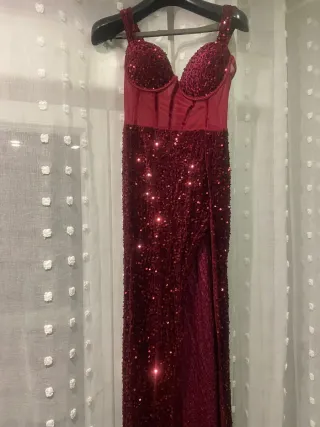 Vestido para fiesta, boda o graduación de lentejuelas y esta abierta en un lado con corte sirena