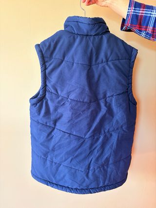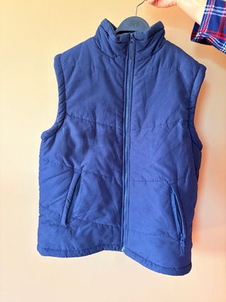 Chaleco de trabajo en color azul. - Cierre de cremallera frontal. - Dos bolsillos laterales con cremallera. - Cuello alto.