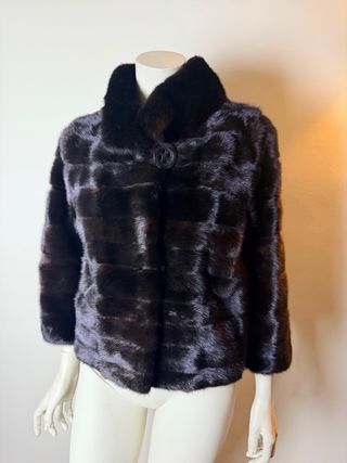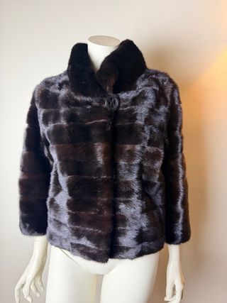 Elegante abrigo de visón sintético. - Diseño de pelo corto. - Cierre de botón. - Cuello alto.