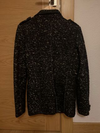 Abrigo tres cuartos de Custo Barcelona. - Diseño texturizado en negro y gris. - Doble botonadura. - Bolsillos delanteros con detalle. - Ribete de piel sintética.