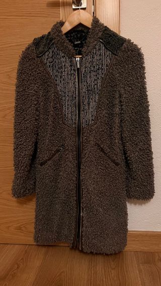 Abrigo original de Custo Barcelona con un diseño único. - Tejido principal texturizado en tono marrón. - Paneles frontales con tejido tweed multicolor. - Detalle de cremallera central. - Bolsillos laterales con ribete. - Cuello con acabado texturizado.