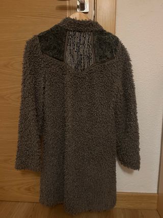 Conjunto de prendas variadas para la temporada de otoño-invierno. - Incluye camisa con estampados de leopardo. - Dos jerseys de pelo sintético muy suaves. - Una blusa sin mangas negra con detalles de volantes y plisados. - Un vestido estampado muy original