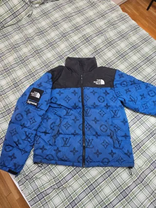 Abrigo con un diseño llamativo y moderno. - Combinación de colores negro y azul. - Estampado distintivo en toda la prenda. - Es talla XL pero en realidad es L - Falso