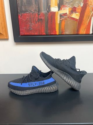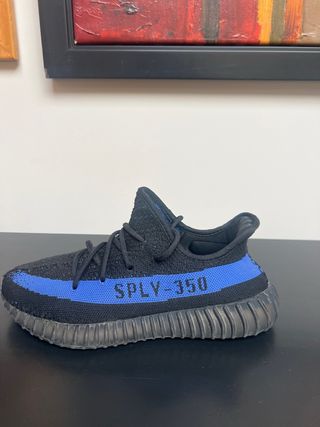 Zapatillas Adidas Yeezy Boost 350 V2 con detalles en azul. - Diseño de corte bajo. - Parte superior de Primeknit. - Suela de goma acanalada.