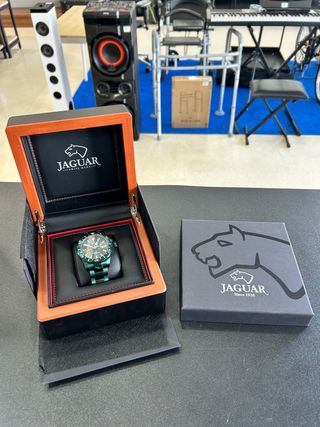 REF: 62399 Elegante reloj Jaguar J988/1 con un llamativo diseño. Artículo en muy buen estado. - Caja de madera con interior de terciopelo negro y detalles rojos. - Brazalete y esfera en tono verde. - Incluye caja original y documentación. Realizamos envíos combinados. 1 AÑO DE GARANTÍA Somos Acerto Segunda mano, tienda de compra-venta y empeños, situada en C/ Santiago de Compostela 20, Roquetas de Mar, Almería. Hacemos envíos en península, Baleares y la mayor parte de Europa. Los artículos reflejados en este anuncio tienen el IVA incluido y está acogido al régimen especial de bienes usados.