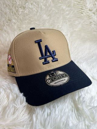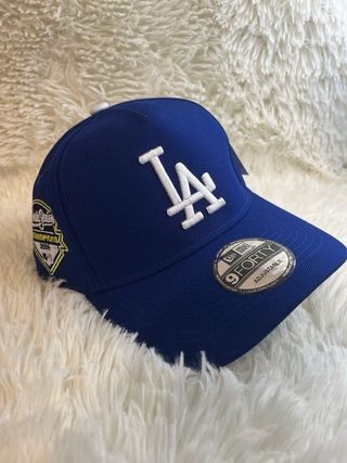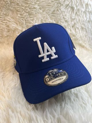 Gorra estilo A-Frame de los LA Dodgers, con el logo 'LA' bordado en blanco. - Parche de aniversario en el lateral. - Cierre ajustable. - Diseño 9FORTY.