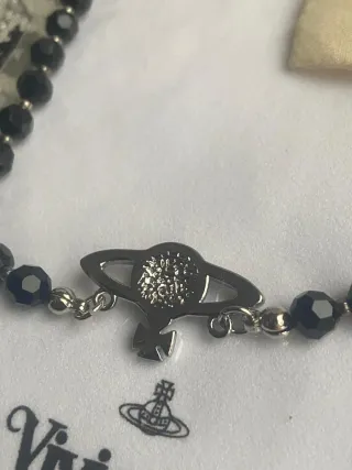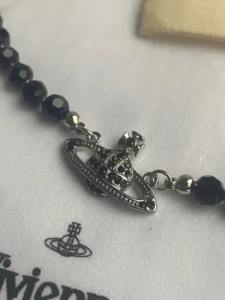 Elegante collar con el icónico Orb de Vivienne Westwood. - Diseño con cuentas facetadas. - Detalle del Orb adornado con pequeñas piedras negras.