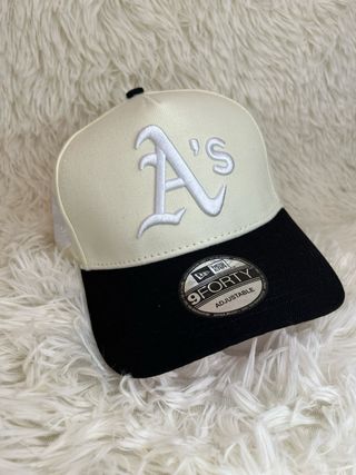 Gorra de béisbol de New Era con el logo de los Oakland Athletics. - Diseño 9Forty. - Combinación de colores beige y negro. - Parche lateral conmemorativo.