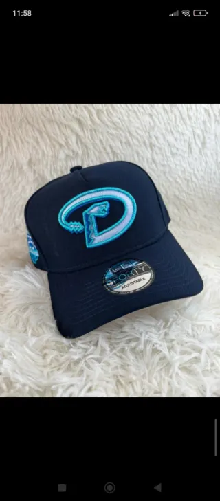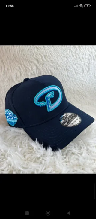Gorra de béisbol de la marca New Era, modelo 9Forty A-Frame, con el logo de los Arizona Diamondbacks. - Diseño con el logo bordado en azul y blanco. - Parche lateral conmemorativo. - Cierre ajustable.