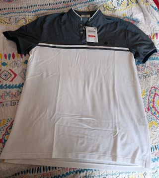 Polo de manga corta de la marca Springfield. - Diseño bicolor en gris y blanco. - Cuello mao con botones. - Logo de la marca bordado.