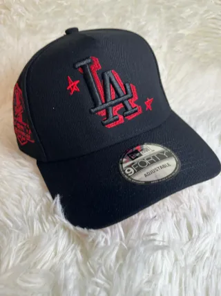 Gorra New Era 9Forty A Frame ajustable Los Angeles Dodgers LA - Logo LA bordado en rojo y negro. - Detalles de estrellas rojas. - Parche lateral con diseño de Los Angeles Dodgers. - Cierre ajustable para mayor comodidad.