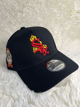 Gorra snapback New Era 9FORTY A-Frame con diseño de los Chicago White Sox. - Logo de los Sox bordado en rojo y amarillo. - Parche lateral con diseño. - Cierre ajustable.