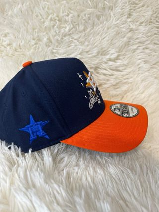 Gorra de béisbol New Era 9Forty A Frame con diseño de los Houston Astros. edición Cartoon - Color principal azul marino con visera naranja. - Logo de los Astros bordado en el lateral. - Diseño gráfico frontal con el logo de los Astros y elementos temáticos. - Cierre ajustable 9Forty A Frame.