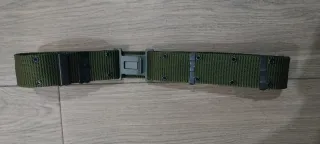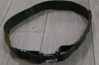 Cinturón de estilo militar en color verde oliva. - Hebilla de plástico resistente. - Correa de nylon duradera. - Ajustable a diferentes tallas.