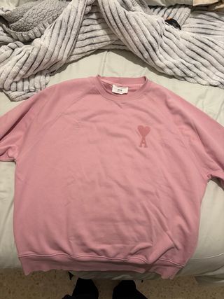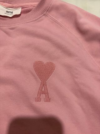 Sudadera de AMI Paris en color rosa. Presenta un diseño clásico con el icónico logo de corazón y la letra A bordado en el pecho. - Cuello redondo. - Puños y bajo acanalados.