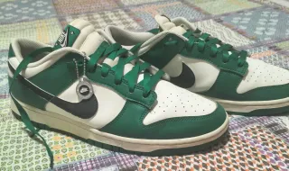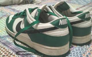 Zapatillas Nike Dunk Low con un diseño clásico en verde y blanco.perfectos - Cordones verdes. - Detalle de Swoosh negro. - Insignia metálica de Nike.