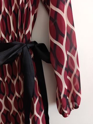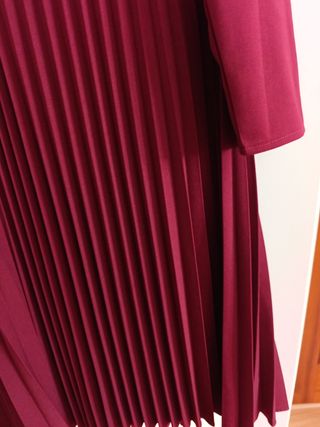 Vestido midi granate mujer Talla: M Longitud de la manga: media Tela de buena calidad, no transparenta. La falda es plisada. El vestido tiene cremallera lateral, no es elástico. Solamente una puesta, totalmente nuevo. Actualmente agotado en la red, su precio era de 21.50€