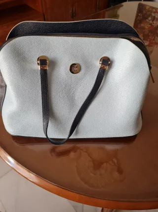 Bolso de mano Tommy Hilfiger con un diseño moderno y elegante. - Combinación de colores azul marino y seleste - Detalle de logo metálico en la parte frontal. - Asas de mano y cierre de cremallera.