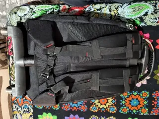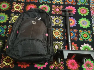 Mochila negra con ruedas y asa extensible. - Diseño moderno. - Compartimentos amplios. - Tirantes acolchados. - Medidas: 58cm x 41cm x 21cm