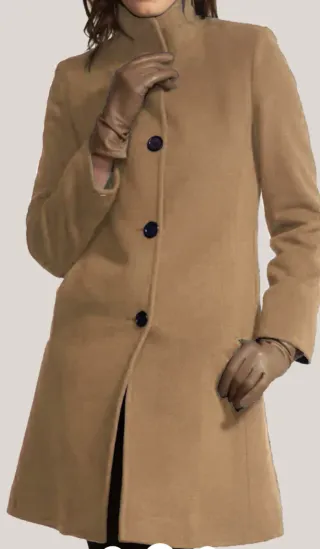 Abrigo elegante para mujer. - Diseño entallado. - Cuello amplio. - Cierre de botones. - Bolsillos frontales.
