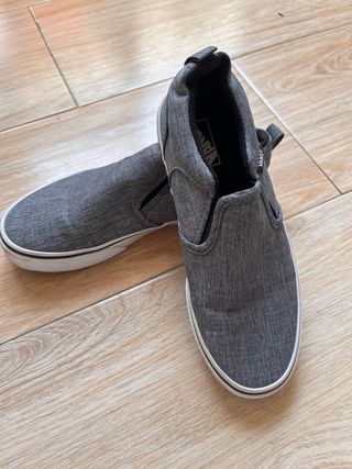 Zapatillas Vans de color gris, estilo slip-on. - Diseño sin cordones. - Detalle de logo en la plantilla. - 2 puestas