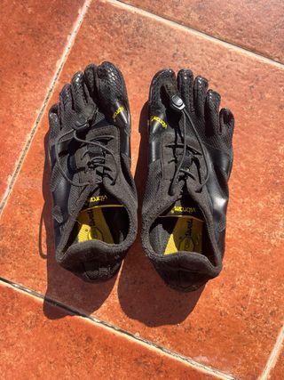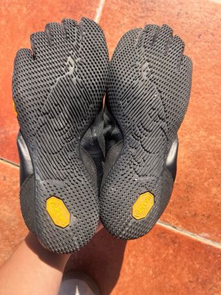 Zapatillas Vibram Five Fingers en color negro, talla 36. Diseñadas para una experiencia minimalista y de contacto con el suelo. - Diseño de dedos separados. - Cierre con cordones ajustables. - Suela flexible.
