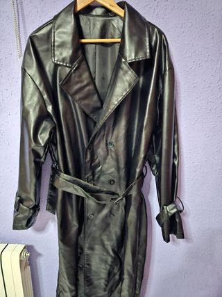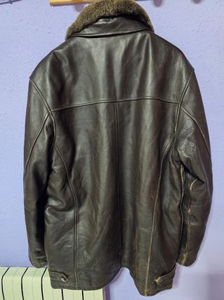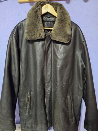 Chaqueta de cuero con un diseño moderno y elegante. A costado 220e Se ha usado 3 veses lo vendo porque me queda pequeño - Cuello alto. - Cierre de cremallera frontal. - Bolsillos laterales con cremallera.