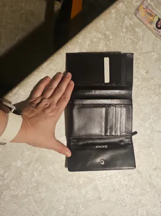 Elegante billetera DKNY en color negro con un distintivo diseño texturizado. - Cierre de cremallera. - Diseño floral o geométrico en relieve.