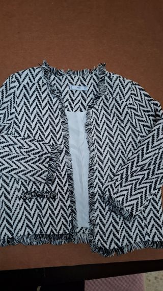 Chaqueta con estampado de cuadros. - Diseño de cuadros en blanco y negro. - Cierre de botones. - Bolsillos en la parte delantera.